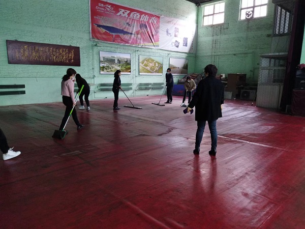 参与活动的20余名同志,分工合作,虽然大家来自不同部门、不同岗位,但争先恐后、合作默契,清理地面、擦拭健身器材、清洁桌凳。“前面的男同志们加油了,我们快赶上你们了!”负责拖地的九分公司主任经济师刘彩在后面说道。“这个乒乓球挡布拿抹布擦拭的效果不太好,用外面的高压水枪冲洗试试吧!”九分公司主任会计师付世芳一边用抹布擦拭挡布一边提出自己的合理化建议,“这个办法好!”九分公司综合办公室主任张路平同意道。