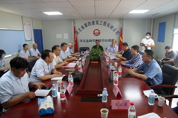 在项目部会议室召开的会议上,杨兆廷对工程的总体质量给予了肯定,向河北四建的付出表示了感谢。他表示,中国特色社会主义制度的优越性,能够在国有企业身上充分展现出来,面对工期紧、雨水多、任务重等困难,河北四建经受住了考验,用实际行动证明了能够打硬仗、打胜仗。他说:“国有企业值得信任”。