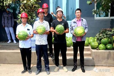 8月3日,业主冀南钢铁集团党委副书记、工会主席王起增带队,到冀南钢铁重组搬迁改造项目开展慰问活动,特意为项目部送来了西瓜和矿泉水,并向奋战在高温一线的广大职工表示诚挚的慰问和衷心的感谢。