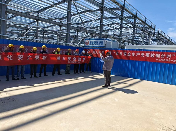 二分公司任丘东进综合产业园项目正在进行钢结构吊装工作,项目部在“百日安全生产无事故倒计时”活动中紧密结合吊装施工特点、人员情况,进行针对性策划,在“深”“常”“实”上下大力气,全力守好安全生产防线。